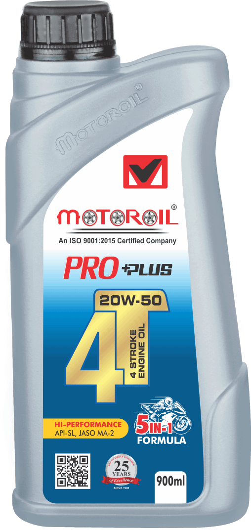 MOTOROIL 4T PRO 20W-50 • Protection to all vital engine parts. • Protection from Rust & Corrosion. • Quick Engine Start. Specially Recommended for Bajaj & older engines. PERFORMANCE : APl-SL/JASO MA-2 PACK SIZES : 1 L & 900ml.